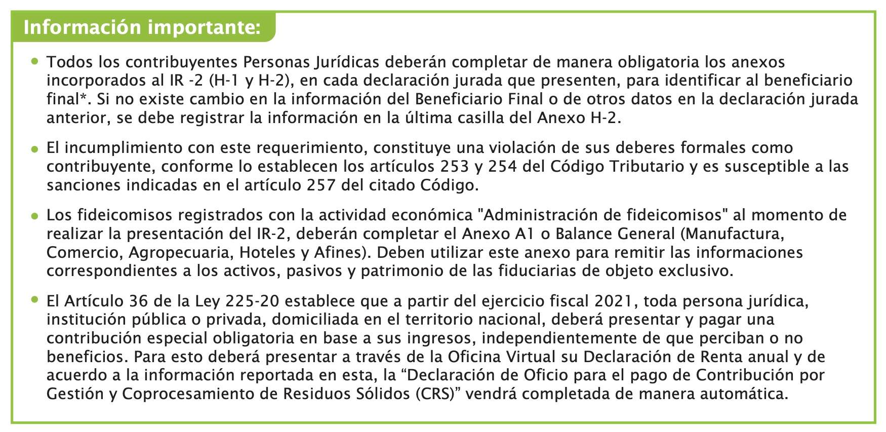 El IR-2 detalla lo siguiente:
